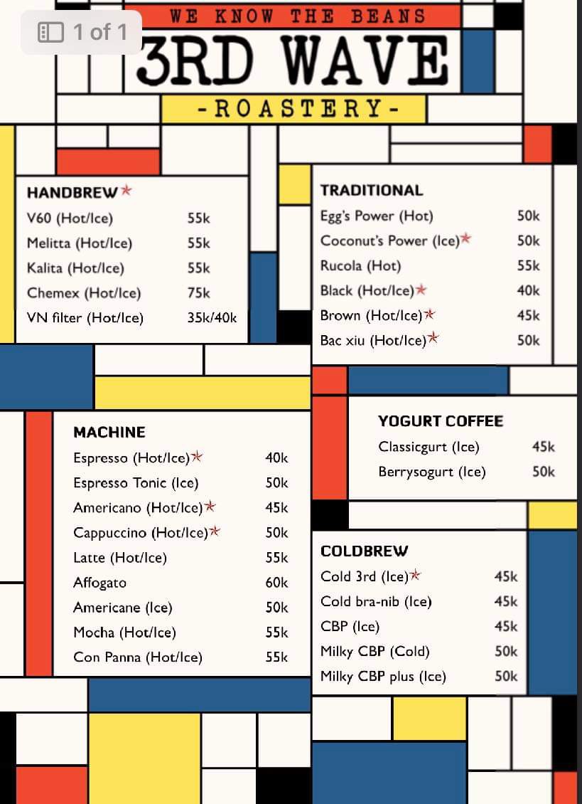 Welcome to Third Wave Roastery (3RD Wave Roastery) - Cafe, a delightful hidden gem located at 17 P. Yet Kieu, Hanoi. This cafe is a haven for coffee enthusiasts, showcasing a meticulously curated menu that emphasizes quality and originality.